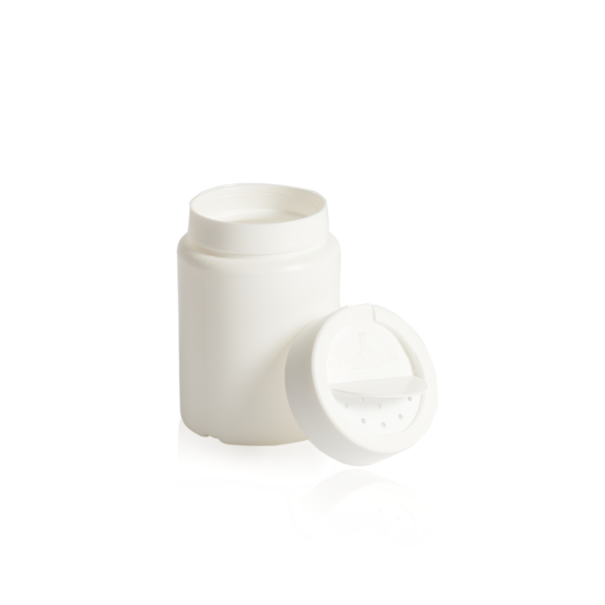 Kupak: menetes fél flip-top, 8 lyukkal, gravírozva: „PRESS/DRÜCK”